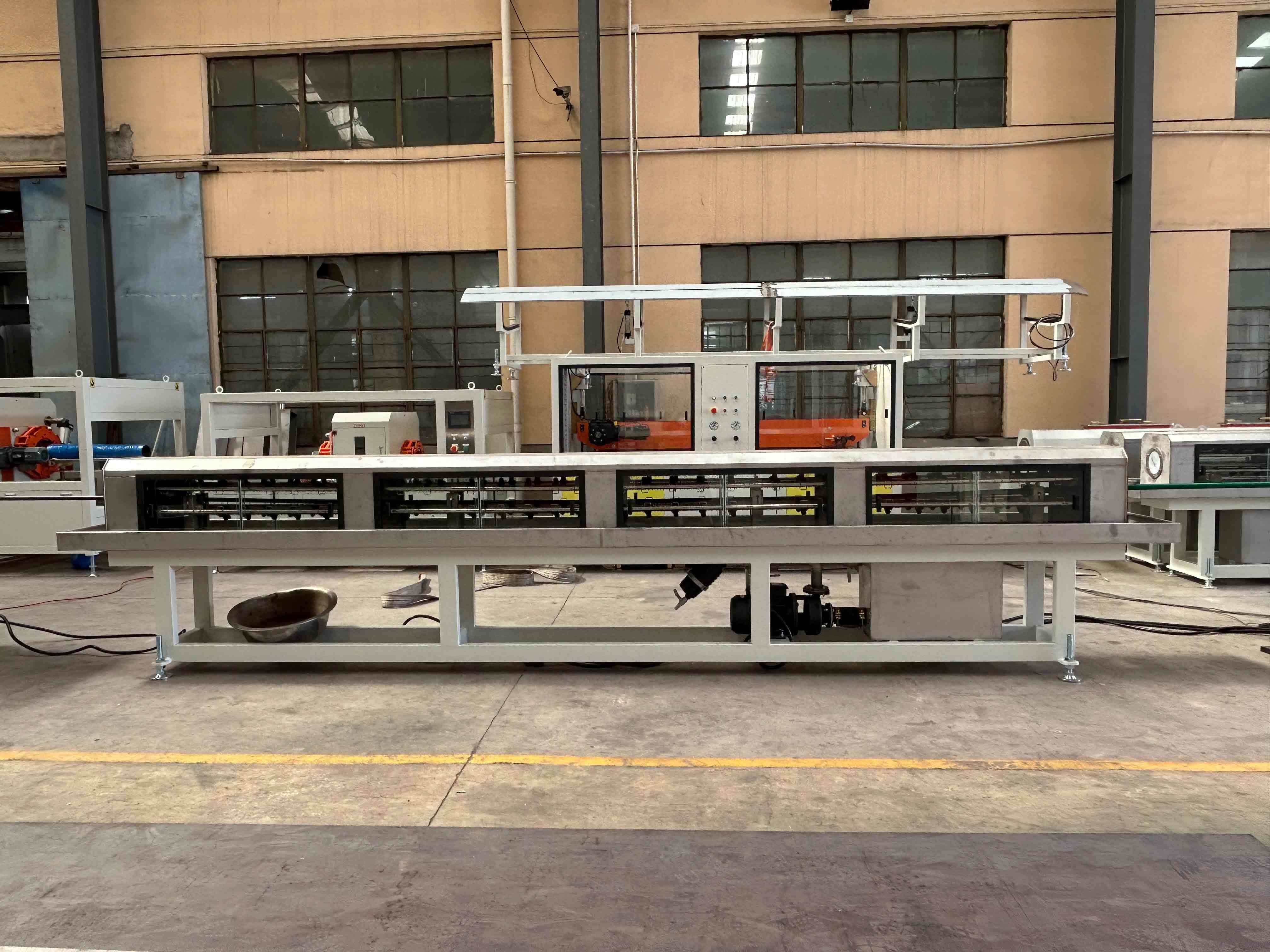 Der geschmolzene Kunststoff geht durch einen Druckkopf, um Rohre/Profile zu bilden, und gelangt dann in einen Vakuumkalibrationsbehälter zur präzisen Größenordnung und Kühlung.