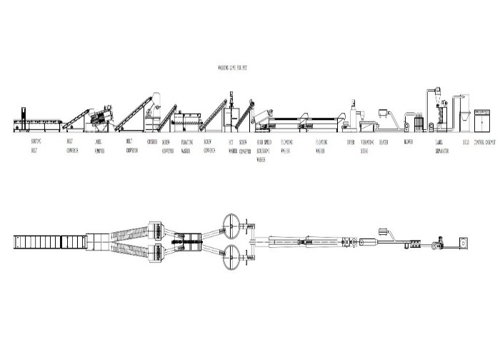 Der Prozess der ganzen Linie: Bandförderer Plasic-Zerkleinerungsmaschine firction Reinigung und Entwässerungsgeschwindigkeitsreibungswaschmaschinenausspülen der Maschineschraubenzufuhr risining Waschmaschine-es-hoh, die Waschmaschine-horizontal sind, entwässern Stadiums-Extrudertrichter Maschine-Trichterschraube ZufuhrPET pp. zwei. Die ganze Linie Gerät ist entsprechend dem schmutzigen Grad entworfen und verpackt Methode des Rohstoffs.