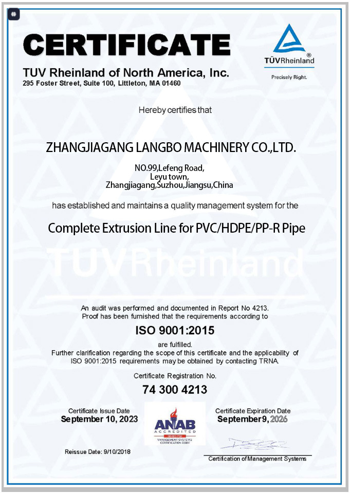 Durch unser ständiges Engagement für die Kunststoffextrusions- und Recyclingtechnologie haben wir uns zu einem führenden Hersteller von Maschinen für PVC/PE/PP-R-Rohre, PE/PP-R-Verbund-Mehrschichtrohre, PVC-Profile, PVC/PP/PE-Verbundprofile, PVC-Compoundierung und Recycling für PET/PP/PE und andere Kunststoffabfälle entwickelt.