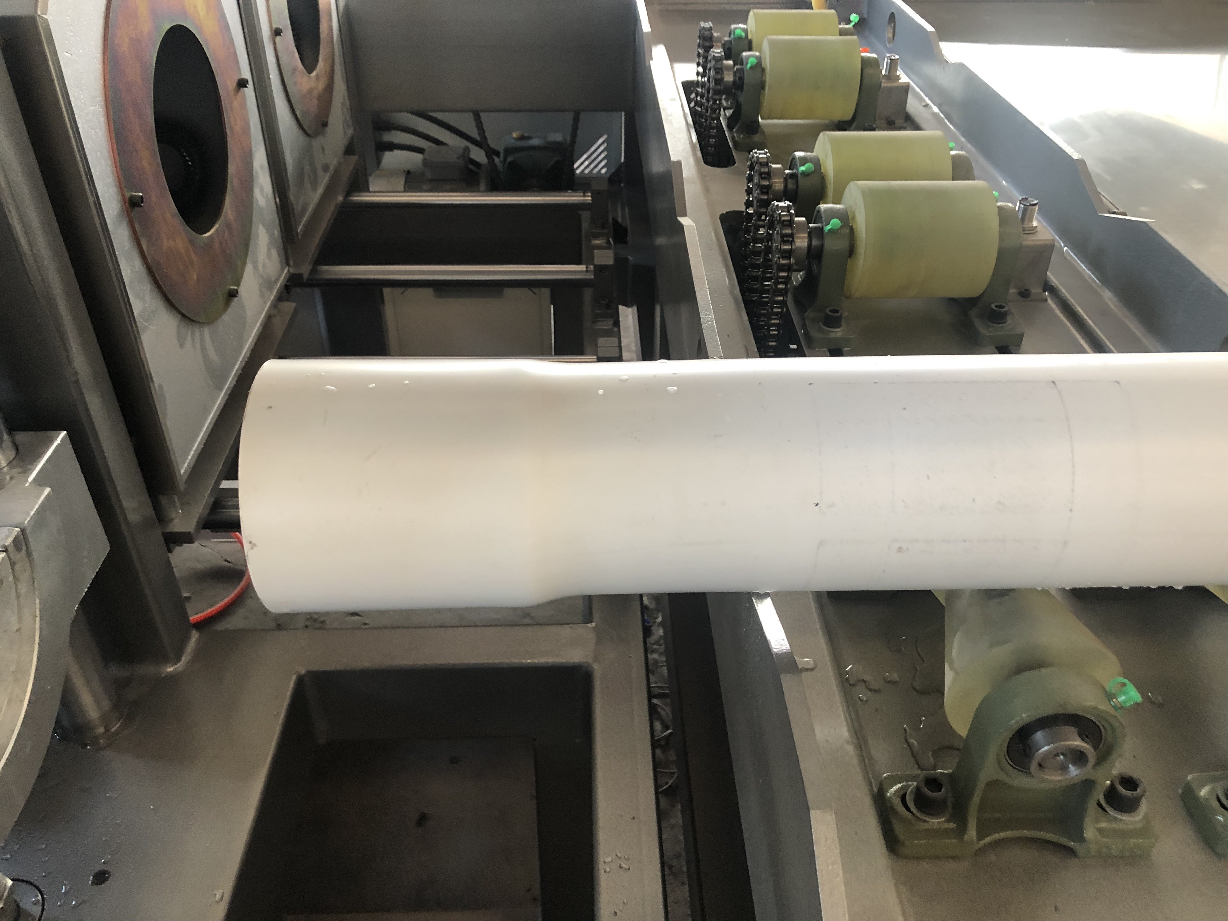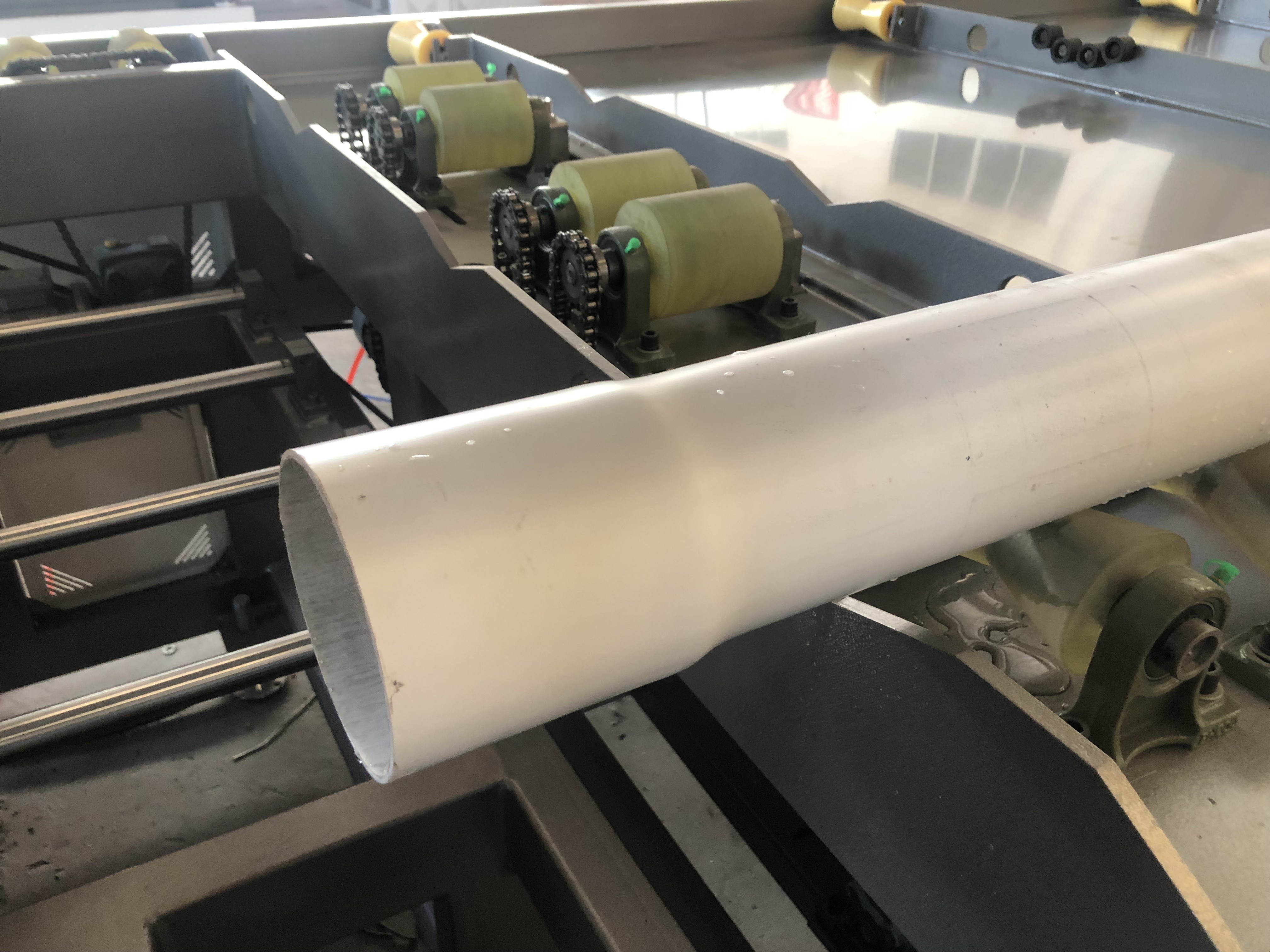 Die vollautomatische Rohrbördelmaschine mit Zeichenvorrichtung und Programmschnittstelle wird in Verbindung mit einer Extrusionsmaschine verwendet.