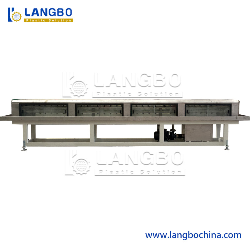 Der Vakuumkalibrierbehälter verfügt über eine Zweikammerstruktur: Vakuumkalibrierung und Kühlteile. Sowohl der Vakuumtank als auch der Sprühkühlbehälter bestehen aus Edelstahl 304. Das ausgezeichnete Vakuumsystem gewährleistet eine präzise Größenbestimmung der Rohre. Wir verlängern den Vakuum- und Kühlbehälter auf 8 m. Durch den deutlich längeren Kühlprozess kann das CPVC-Rohr gut gekühlt werden und hat eine bessere Oberfläche.