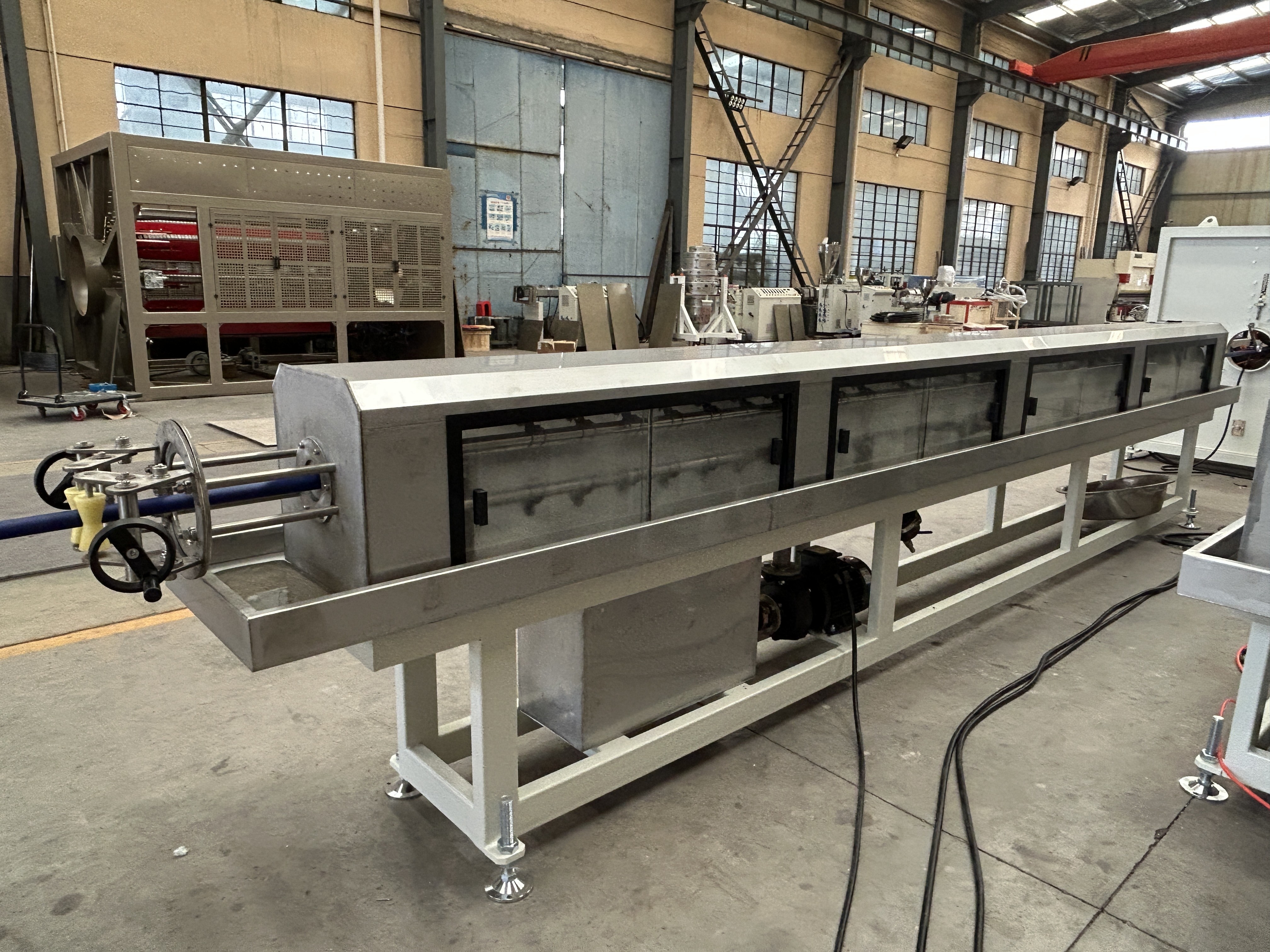 für PPR-Rohre mit Temperaturregelungssystem für Öl im Inneren.Plastikmaschine,Extruder verwendet große L/D- und Multi-Mischstruktur,die für die Produktion von PPR-Tieftemperatur-Extrusionsverfahren geeigneter ist.mit Öl-Temperaturregelung im Inneren, schönen und praktischen Edelstahl-Körper für Vakuumkalibrierung und Sprühkühlsystem,Ein einzigartiges Vakuumsystem mit mehreren Abschnitten sorgt für eine stabile Größe und Kühlung der RohreDie spezielle Sprühkühlvorrichtung verbessert die Kühlleistung; die spezielle Wasserposition und das Wassertemperatursystem machen die Maschine intelligenter.Die Abschleppungsanlage hat eine besondere Struktur, die einfach und bequem zu bedienen ist; die Steinklemmung verwendet ein mechanisches und pneumatisches Kombinationssystem, das zuverlässiger ist.Wir kommen mit einem hydraulischen System., der einen glatten Querschnitt gewährleistet; mit einer Staubabsaugung ausgestattet, die eine saubere Arbeitsumgebung gewährleistet.