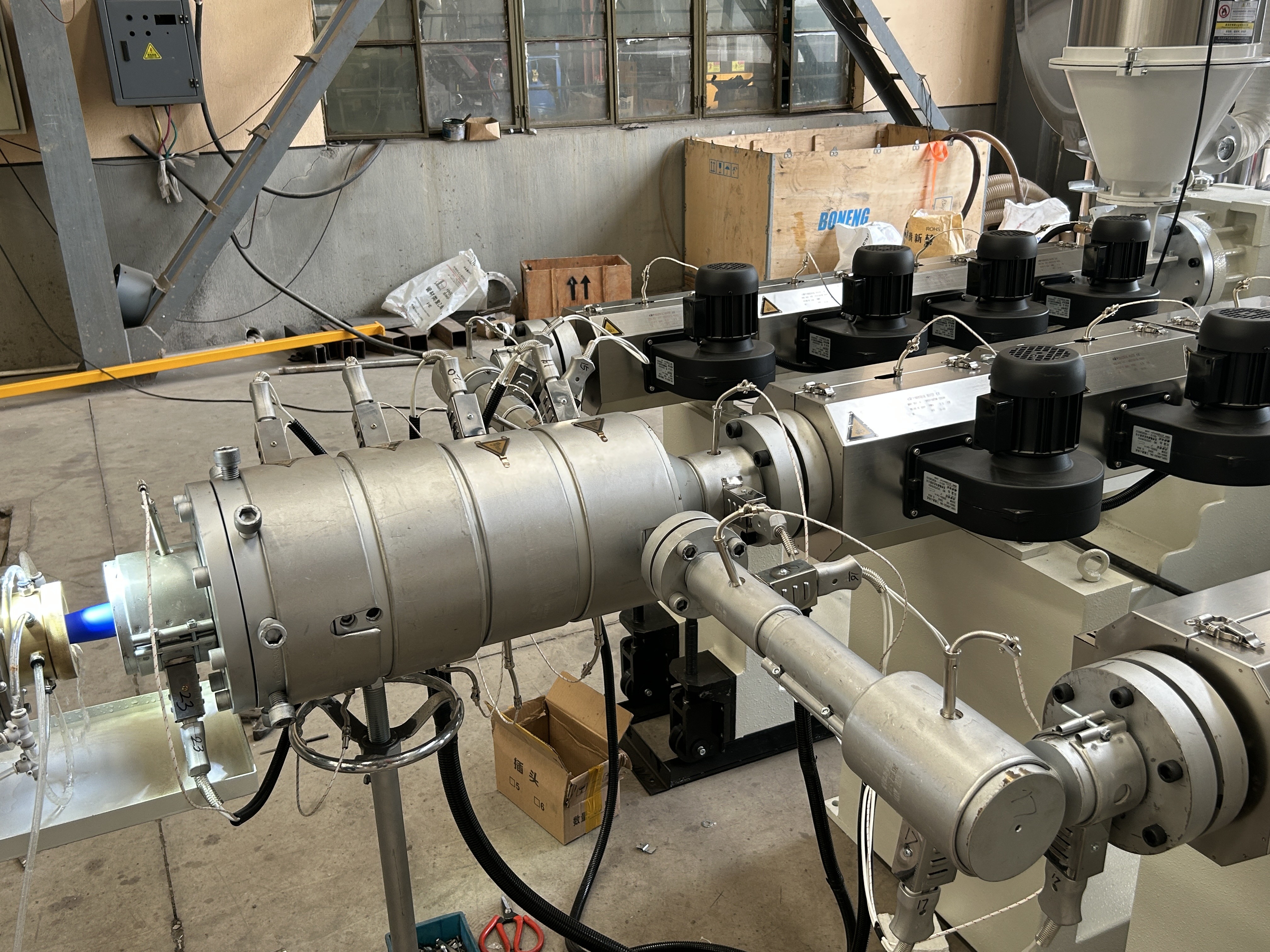 Der geschmolzene Kunststoff geht durch einen Druckkopf, um Rohre/Profile zu bilden, und gelangt dann in einen Vakuumkalibrationsbehälter zur präzisen Größenordnung und Kühlung.