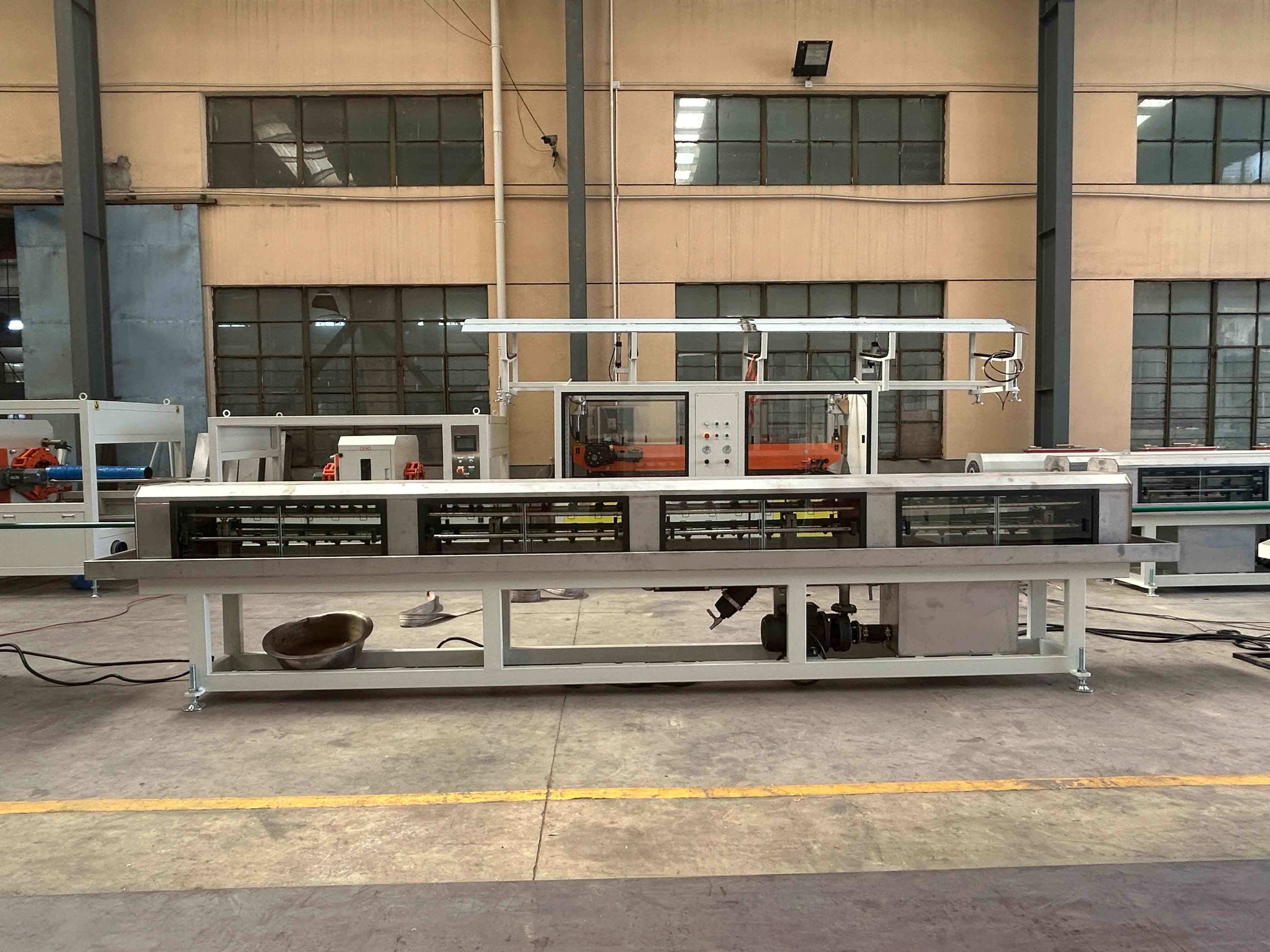 Ideal für Sanitär-, Heizungs- und industrielle Flüssigkeitstransportsystemen. Diese Maschine sorgt für eine gleichbleibende Rohrqualität mit glatten Innen- und Außenflächen, ausgezeichnete Maßgenauigkeit,und überlegene mechanische FestigkeitDie Produktionslinie umfasst automatische Zuführung, Extrusion, Vakuumkalibrierung, Kühlung, Abziehen, Schneiden und Stapeln von Systemen, die eine hohe Effizienz und minimale manuelle Eingriffe gewährleisten.