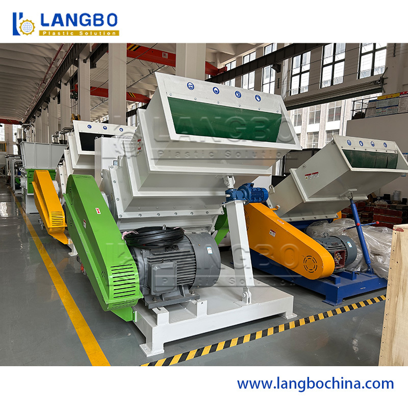 Zum Beispiel ist die Zerkleinerer für PE/PP-Folie, die Zerkleinerermaschinenklingenstruktur V-förmig. Der Schwimmwaschtank hat 5 Rollen oben, die letzte Rolle wird von einem Wechselrichter gesteuert. Steifer Kunststoff wird am Boden abgelassen. Die Reibungswaschmaschine wäscht das Material vor und entfernt Schmutzwasser usw., sie hat 1200 U/min. Kunststoffentwässerungsmaschine mit 1500 U/min Drehung, um Schmutzwasser zu entfernen. Der endgültige Feuchtigkeitsgehalt beträgt 5~8%.