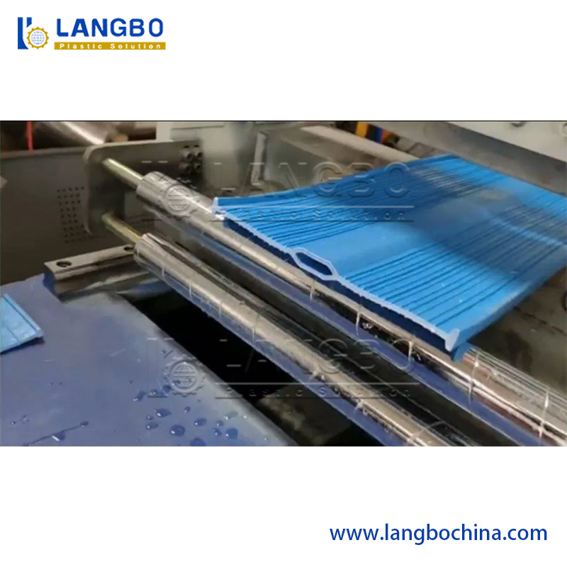 Diese PVC-Profil-Extrusionslinie verwendet einen konischen Doppelschneckenextruder, der sowohl für PVC-Pulver als auch für PVC-Granulat geeignet ist. Er verfügt über ein Entgasungssystem, um eine ausgezeichnete Materialplastifizierung zu gewährleisten. Die Hochgeschwindigkeitsform ist verfügbar und kann die Produktivität erheblich steigern.