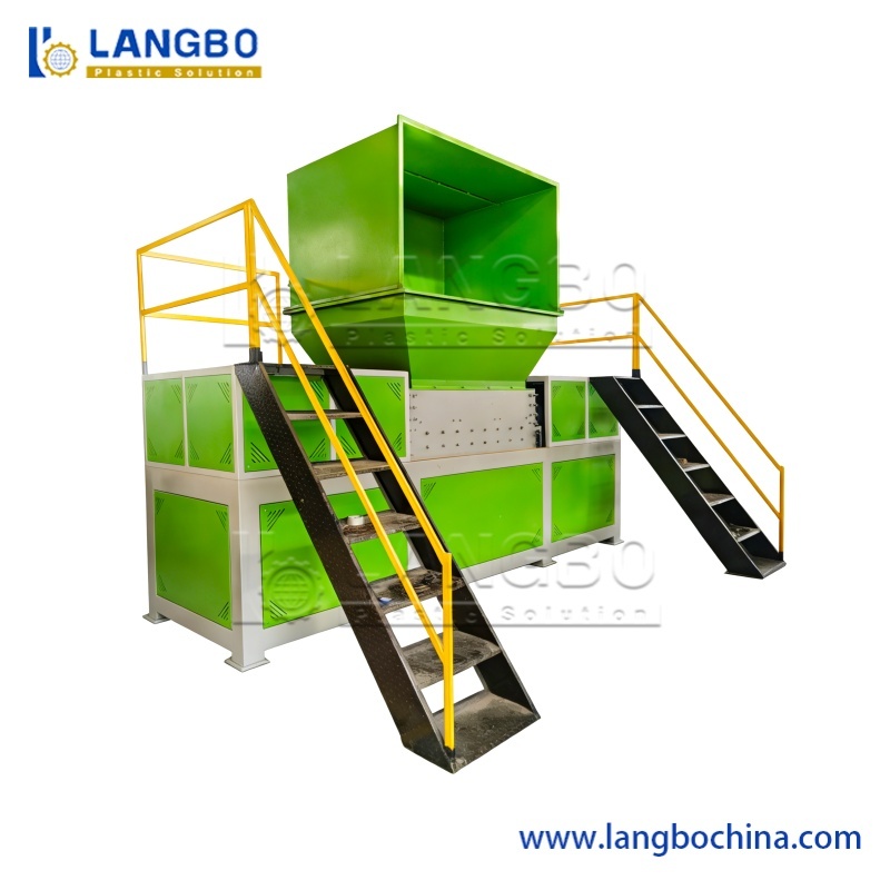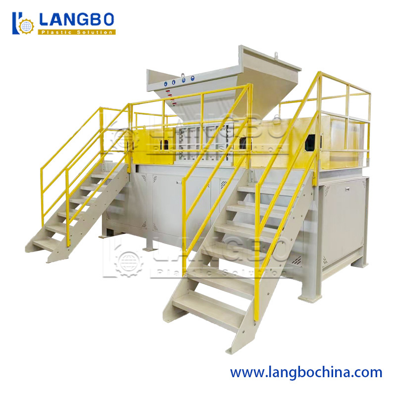 Bevor die HDPE-Rohrextrusionslinie reibungslos läuft, um Rohre zu extrudieren, müssen die Arbeiter die Maschine starten und jedes Detail während des gesamten Prozesses einstellen. In diesem Prozess entstehen viele verschwendete PE-Schmelzklumpen. Es sind große Blöcke und hart genug. Daher können sie nicht mit einem Zerkleinerer behandelt werden, sondern nur mit einem Schredder. Unser Einwellen-Schredder hat eine hohe Rotationsgeschwindigkeit und geformte Messer. Die Arbeiter geben die verschwendeten Schmelzklumpen durch die Öffnung, und die Partikel fallen aus dem Auslass.