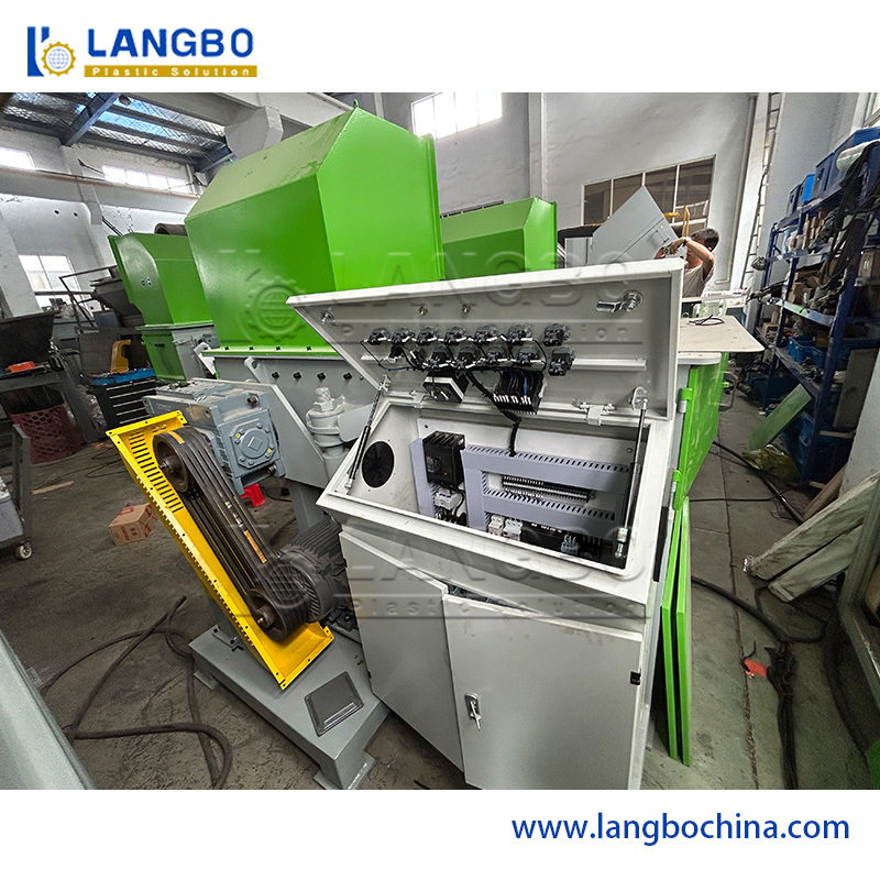 Vor der Inbetriebnahme der HDPE-Rohrextrusionslinie müssen die Arbeiter die Maschine starten und alle Parameter während des gesamten Prozesses einstellen. Während dieses Verfahrens entstehen PE-Schmelzklumpen als große, harte Blöcke, die von Standard-Zerkleinerern nicht verarbeitet werden können. Unser Einwellen-Zerkleinerer, der sich durch hohe Rotationsgeschwindigkeit und speziell geformte Messer auszeichnet, verarbeitet diese Materialien effizient über den Einlass, wobei die Partikel aus dem Auslass austreten.