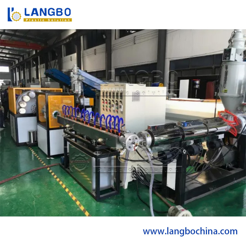 Raw Material + Additive→Mixed Granulation→Delivery → Single Screw Extruder →Extrusion Die→Spray Cooling Water Tank→Belt Haul-Off→Fiber Winding Machine→Preheat the Oven→Second Single Screw Extruder→Extrusion Die→Spray Cooling Water Tank→Belt Haul-Off→Coiler